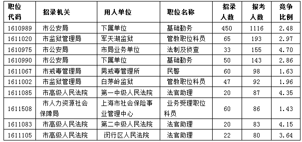 市公安局下屬單位基礎(chǔ)勤務(wù)(職位編號1610989)這一職位目前已經(jīng)有1116人報(bào)名,與昨日相比申報(bào)人數(shù)基本翻一番,但數(shù)字龐大只是一種表象,該職位招錄450人,需要有1350人才能達(dá)到開考比例,因此,符合條件的考生還可以考慮該職位。