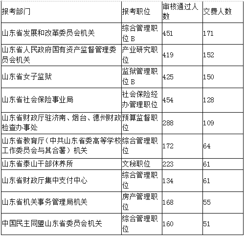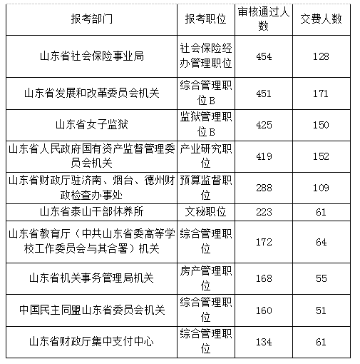 下面是今日?qǐng)?bào)名審核通過(guò)最多和繳費(fèi)人數(shù)最多的前十個(gè)職位,供各位考生參考。同時(shí)仍有9個(gè)職位無(wú)人通過(guò)審核,大家可以理性選擇報(bào)考。