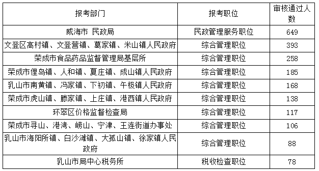 下面是報名審核通過人數(shù)的前十個職位,供各位考生參考。