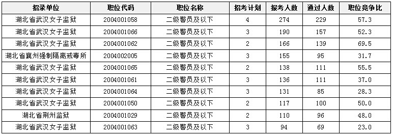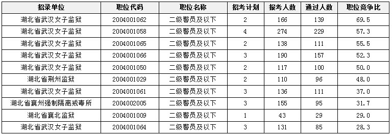 詳細報考數(shù)據(jù)請下載:2016年湖北省公務員考試省監(jiān)獄、戒毒系統(tǒng)各職位報考情況(3月26日10時).xlsx