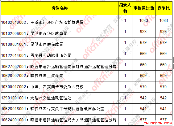 2016云南省考審核人數達199534人,最熱職位1083:1_截止21日24時