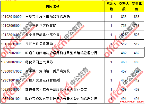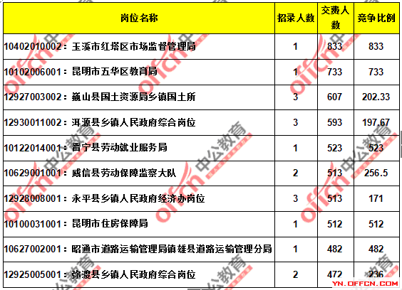2016云南省考繳費人數(shù)達171198人,最熱職位833:1_截止24日14時
