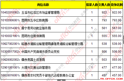2016云南省考繳費人數(shù)達(dá)183747人,最熱職位922:1_最終數(shù)據(jù)