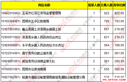 最終數(shù)據(jù),招錄比例的職位為10402010002:玉溪市紅塔區(qū)市場監(jiān)督管理局,招錄1人,最終繳費人數(shù)為922人,具體信息如下:
