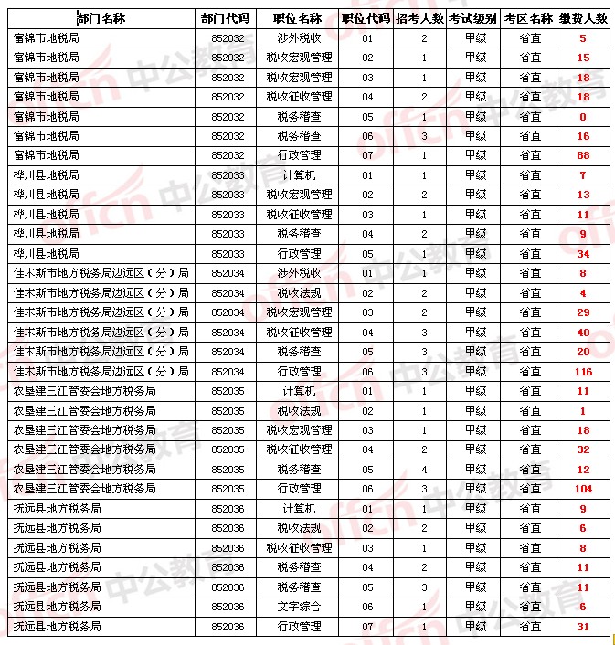 【省直】2014年黑龍江省公務(wù)員考試?yán)U費(fèi)人數(shù)統(tǒng)計[5月18日]