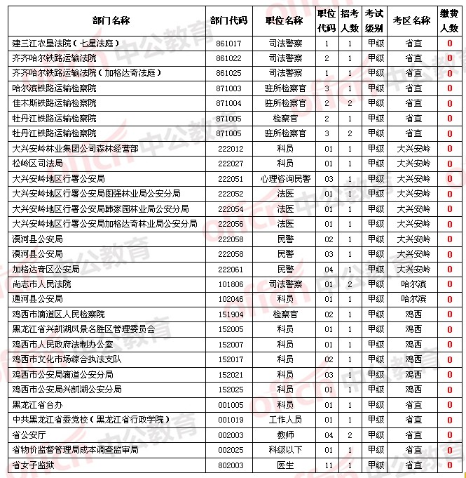 中公網(wǎng)校為參加2014年黑龍江省公務(wù)員考試的考生整理2014年黑龍江省公務(wù)員考試的零報(bào)名職位,由于報(bào)名網(wǎng)站報(bào)名情況每30分鐘統(tǒng)計(jì)一次,數(shù)據(jù)可能會(huì)有細(xì)微差異,所有數(shù)據(jù)僅供大家參考。