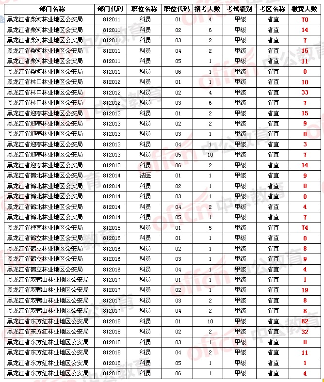 【省直】2014年黑龍江省公務員考試報名人數統(tǒng)計