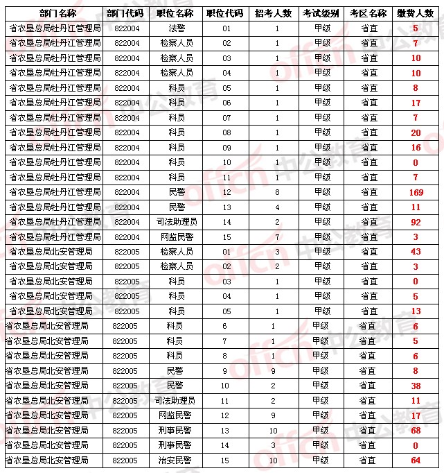 【省直】2014年黑龍江省公務(wù)員考試報名人數(shù)統(tǒng)計