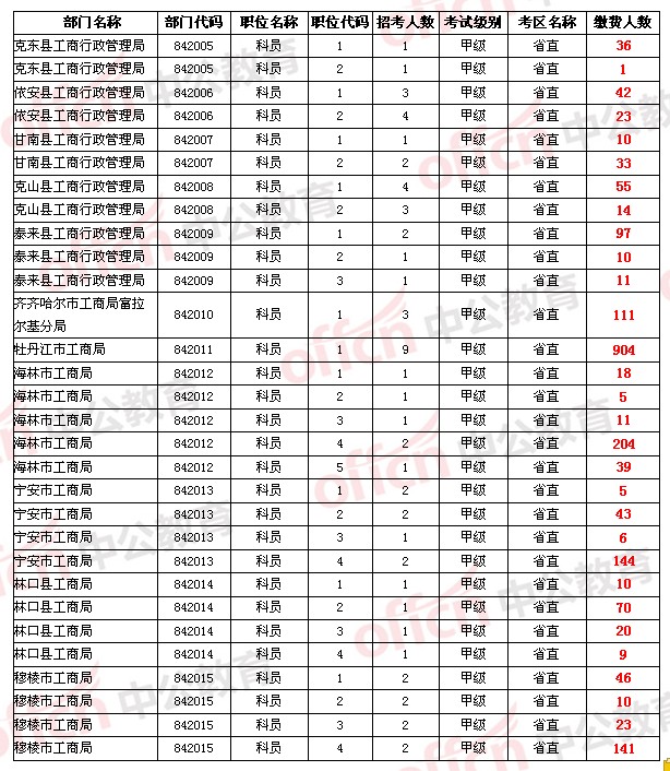 【省直】2014年黑龍江省公務員考試報名人數(shù)統(tǒng)計