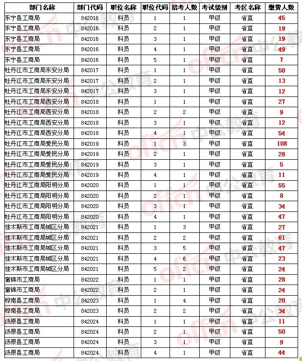 【省直】2014年黑龍江省公務員考試報名人數統(tǒng)計