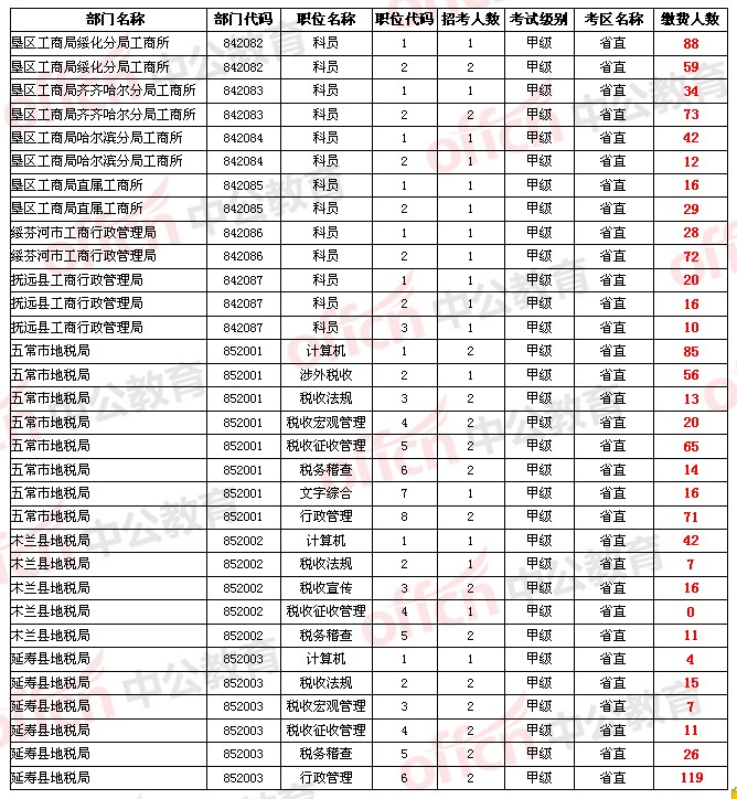 【省直】2014年黑龍江省公務(wù)員考試報(bào)名人數(shù)統(tǒng)計(jì)