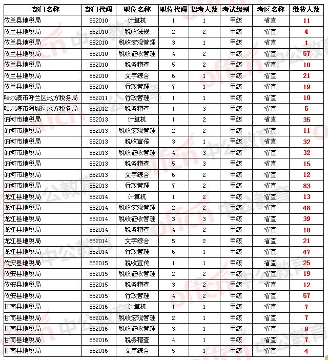 【省直】2014年黑龍江省公務(wù)員考試報名人數(shù)統(tǒng)計