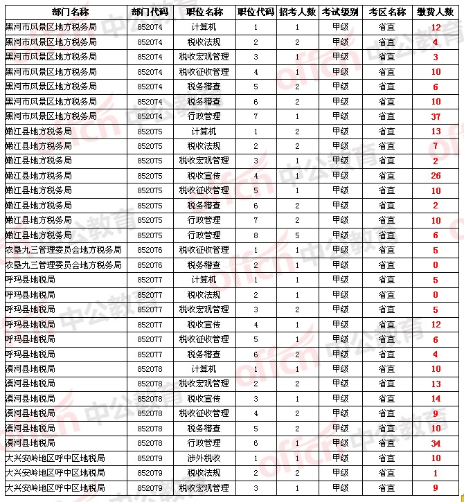 【省直】2014年黑龍江省公務(wù)員考試報名人數(shù)統(tǒng)計