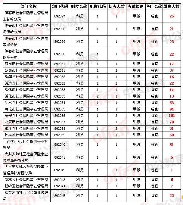 【省直】2014年黑龍江省公務(wù)員考試報名人數(shù)統(tǒng)計