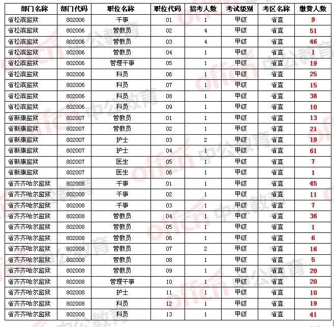 【省直】2014年黑龍江省公務(wù)員考試報名人數(shù)統(tǒng)計