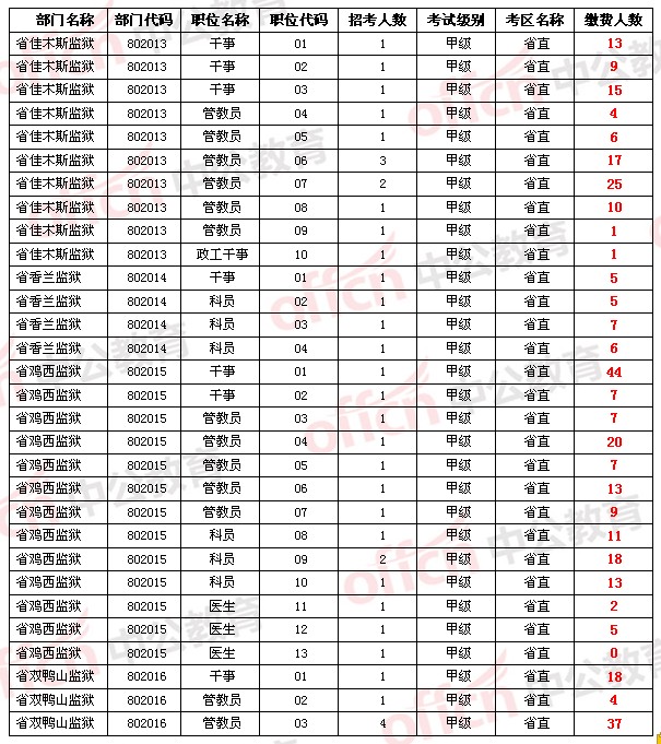 【省直】2014年黑龍江省公務(wù)員考試報名人數(shù)統(tǒng)計