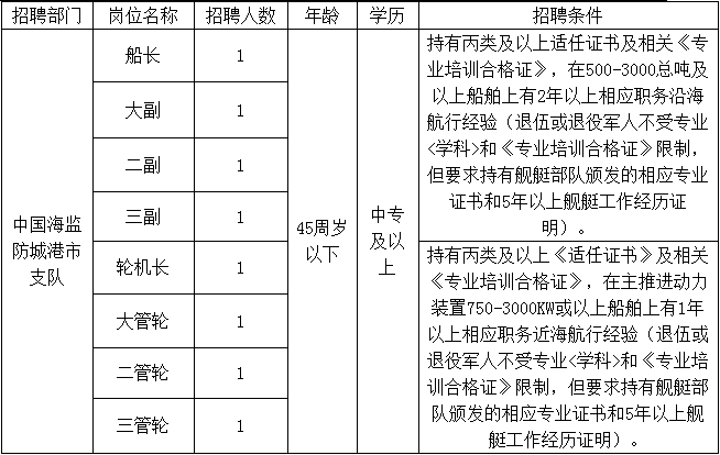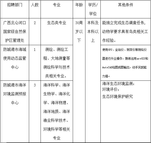 三、工資福利待遇: 聘用人員工資福利按防城港市海洋局相關(guān)文件規(guī)定執(zhí)行。
