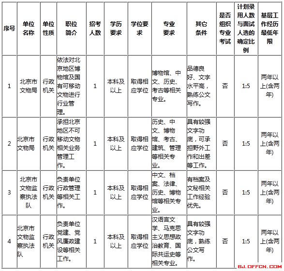 為了進一步做好2015年度北京市文物局補充錄用公務(wù)員工作,現(xiàn)將相關(guān)情況公布如下: