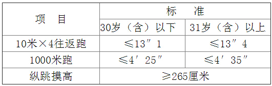 體能測評三項全部達標方為合格(體能測評項目只有縱跳摸高可以進行三次測試,其他項目不得進行復測)。