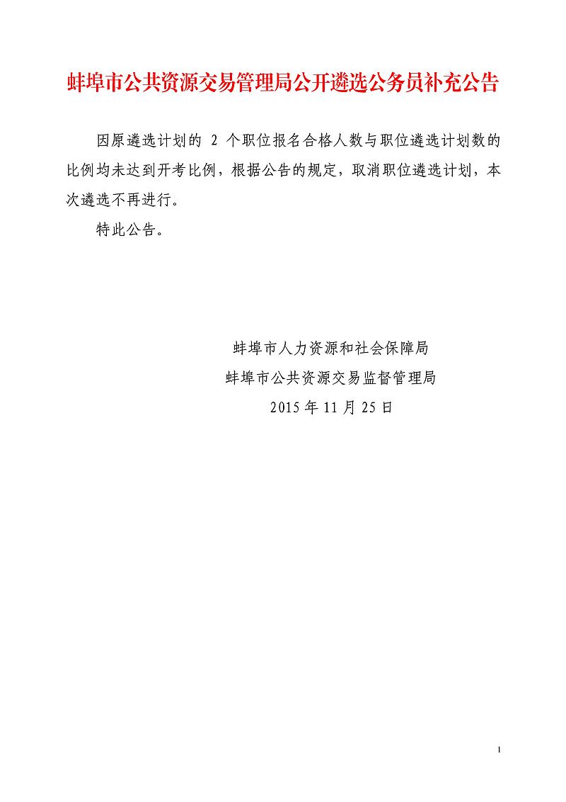 2015安徽蚌埠市公共資源交易管理局遴選公務(wù)員補充公告