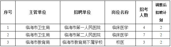 2015浙江臨海市事業(yè)單位招聘調(diào)整部分崗位招聘計劃公告