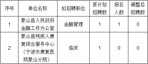 2015浙江象山縣人民政府金融工作辦公室等(2家)事業(yè)單位招聘指標(biāo)取消公告