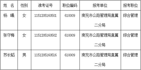 面試資格審查人員名單中所列人員,于2016年 1月20日(星期三)上午9:00-11:30,在南充市公路管理局直屬分局人事科(順慶區(qū)桑園路31號(hào))進(jìn)行面試資格審查。