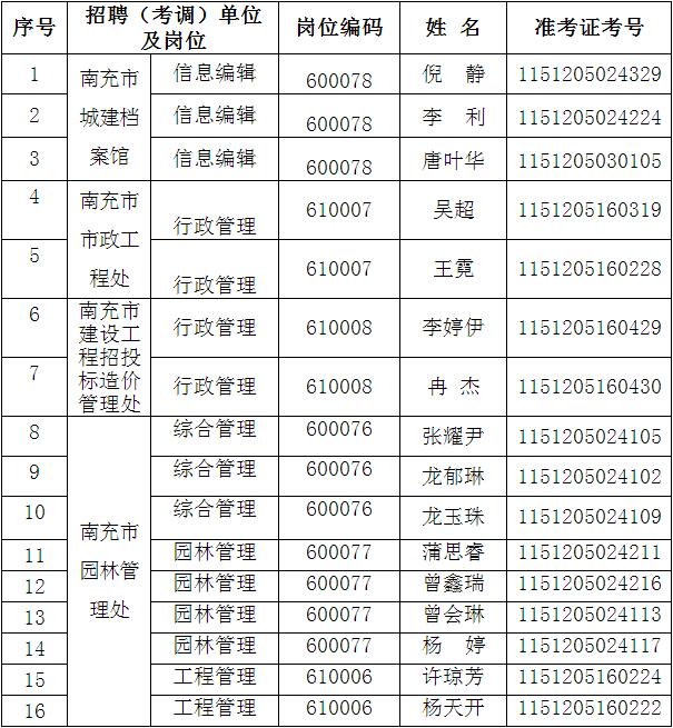 2015年12月四川南充市住房和城鄉(xiāng)建設(shè)局屬事業(yè)單位招聘(考調(diào))人員面試公告