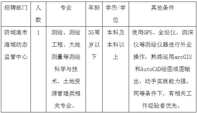 三、工資福利待遇: 聘用人員工資福利按防城港市海洋局相關(guān)文件規(guī)定執(zhí)行。