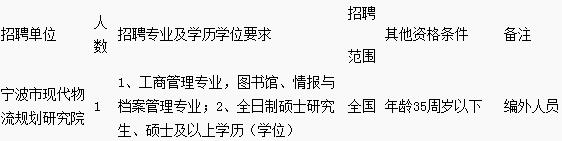 2015浙江寧波市現(xiàn)代物流規(guī)劃研究院招聘編外人員公告【招1人】