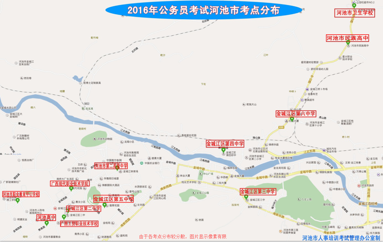 2016廣西公務(wù)員考試河池市考點(diǎn)分布圖