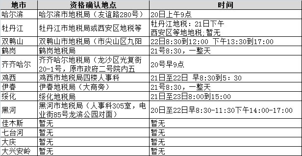 2014黑龍江省考面試各地市地稅資格確認時間及地點匯總