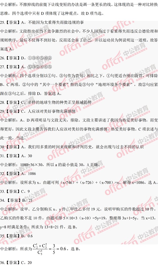 2014年河南公務(wù)員考試行測答案