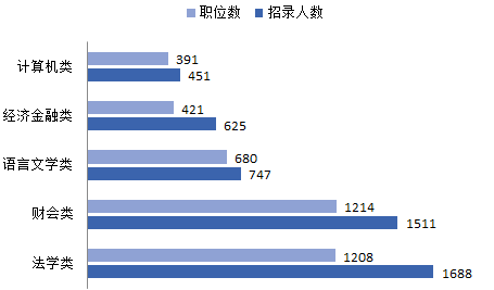 在公務員考試招錄計劃中,部分崗位技術含量高,需要有相關教育背景的專業(yè)人才,因此大多數(shù)職位都會設置專業(yè)要求,本次考試招錄中,法學類專業(yè)需求量,“人氣”最旺,其次是財務會計類專業(yè),與法學類專業(yè)的需求量基本持平,這兩類專業(yè)的考生具有更大的選擇面,此外,語言文學類、經(jīng)濟金融類、計算機類等專業(yè)也比較熱門,考生們再結(jié)合自身其他條件選出符合自身的職位。