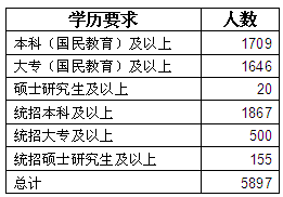 從今年的職位表來看,對(duì)學(xué)歷的劃分比較細(xì)致,嚴(yán)格限定了國民教育和統(tǒng)招學(xué)歷。今年依然是本科學(xué)歷人群占優(yōu)勢(shì),明確要求“統(tǒng)招本科及以上”共招錄1867人,占總招錄人數(shù)的31.6%。本科(國民教育)及以上共招錄1709人,占總招錄人數(shù)的28.9%。“碩士研究生及以上”僅招錄20人,“統(tǒng)招碩士研究生及以上”招錄155人。今年對(duì)碩士研究生的需求跟去年相比略有下降。